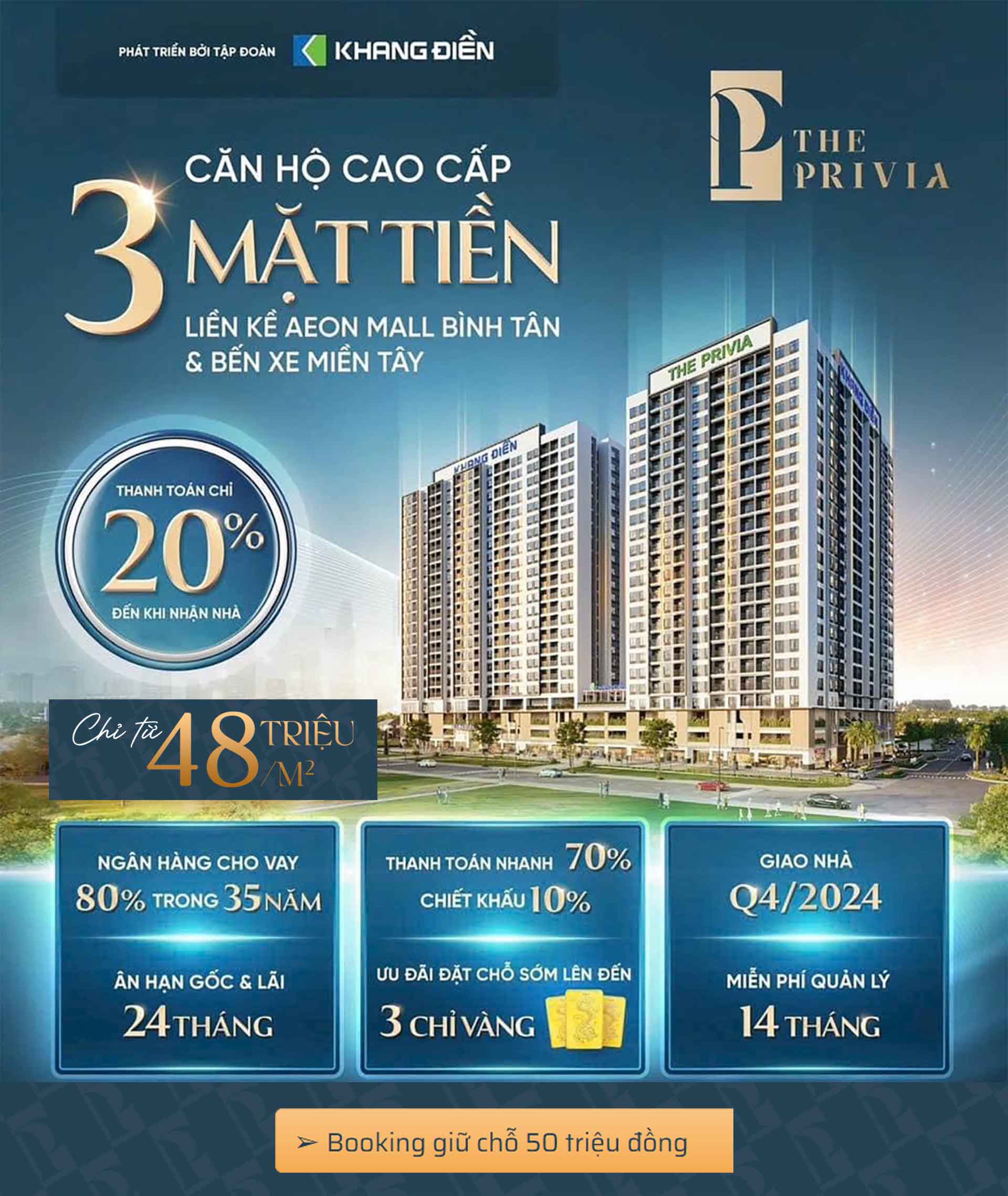 Tập đoàn Khang Điền là một trong những chủ đầu tư bất động sản uy tín hàng đầu tại Việt Nam. Với hơn 19 năm kinh nghiệm trong lĩnh vực bất động sản, Khang Điền đã triển khai thành công hàng loạt dự án lớn nhỏ trên khắp cả nước, đặc biệt là tại khu vực TP.HCM. Khang Điền luôn chú trọng đầu tư vào chất lượng sản phẩm và dịch vụ, mang đến cho khách hàng những trải nghiệm sống tốt nhất. Các dự án của Khang Điền được thiết kế hiện đại, tiện nghi, đáp ứng nhu cầu của mọi đối tượng khách hàng. Một trong những điểm mạnh chủ đầu tư Khang Điền cũng luôn đảm bảo tiến độ thi công và bàn giao dự án đúng thời hạn và là 1 trong những chủ đầu tư hiếm hoi ra sổ đỏ sớm sau khi bàn giao nhà .